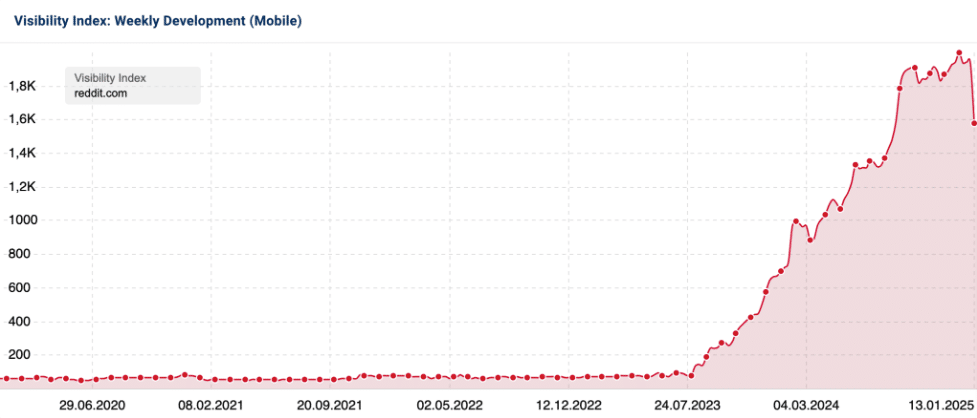 על פי הבדיקות של sistrix, אתר Reddit רשם את העליה הגבוהה ביותר בכמות הנראות בעמוד תוצאות החיפוש בגוגל ארה"ב. בשנת 2023 הוא היה במיקום 92 בארה"ב מבחינת כמות הנראות בתוצאות החיפוש ובסוף שנת 2024 הוא כבר היה במקום ה-3. בשל העליה הוא נהפך להיות מתחרה SEO גם בתחומים שלא היה קודם כמו למשל מול אתרי השוואות, סקיצות וביקורות על מוצרים שונים.