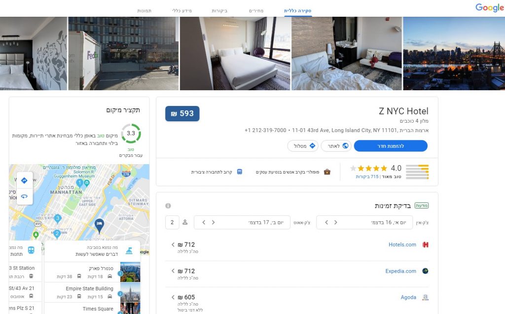איך נראה מנוע חיפוש המלונות של גוגל?