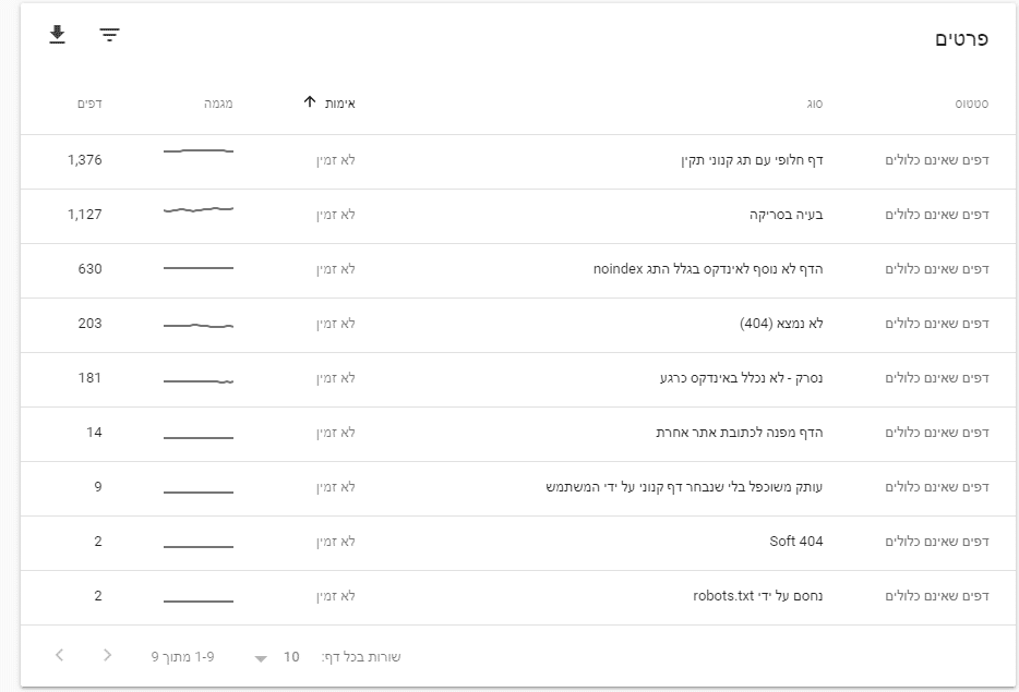 מעבר לזאת, יש גם דפים שלא נכללים באינדקס בגלל הגדרות אחרות או כאלו שלא רשומים תחת הדוגמאות הנ"ל. כדי למצוא אותם יש לחזור לדו"ח הראשון ולבחור ב-"דפים שאינם כלולים".