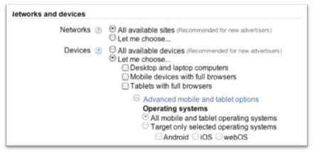 גוגל תחל בימים הקרובים לאפשר למפרסמים לבנות קמפייניים ייעודיים לטאבלטים. בימים הקרובים תיתווסף אפשרות נוספת במסך הניהול שלכם תחת "Network and devices". אם עד עכשיו יכולתם לטרגט את הקמפיין שלכם עבור טאבלט מסוג Ipad בלבד, עם האפשרות החדשה תוכלו לטרגט את הקמפיין שלכם עבור כל סוגי הטאבלטים הקיימים. יותר מזה, תוכלו לבחור בצורה מדויקת באלו טאבלטים ומערכות הפעלה ספציפיים תרצו שהקמפיין שלכם יופיע.
