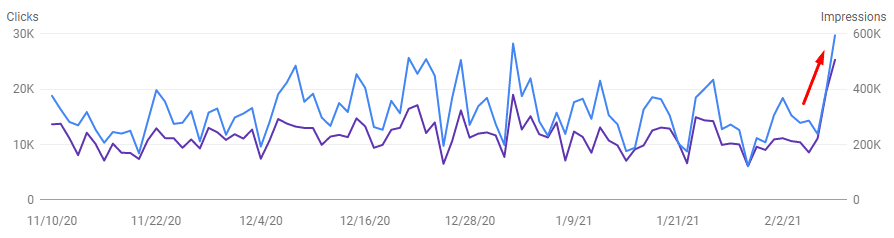 עד לתחילת חודש פברואר 2021, כאשר גוגל פרסמו את ההודעה, הדוח ב-Search Console כנראה שאסף נתונים רק מאפליקציית גוגל כרום ומעמוד הבית של גוגל ב-Web.