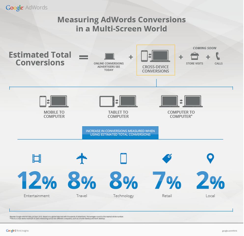 בעוד שבועיים אמורה להיפתח בממשק גוגל אדוורדס ישראל האופציה לביצוע מעקב המרות בין מכשירים. בהמשך למגמת ה- Enhanced Campaigns ול- Conversion attribution מעקב ההמרות בין המכשירים החדש יאפשר לנו לפתוח תחת קורת גג אחת מספר קמפיינים ולהגיע לקהל היעד שלנו בכל המכשירים. הפיצ'ר החדש יאפשר לנו בלחיצת קליק פשוטה לעקוב אחרי כל מעגל החיים של ההמרה, מהרגע בו מתבשל החיפוש לסופשבוע בצפון בסמארטפון, בתחנת הרכבת, בדרך לעבודה ועד ללחיצה על כפתור "ההזמנה" בדסקטופ בערב לאחר השכבת הילדים וההתייעצות עם האישה. גאוני.
