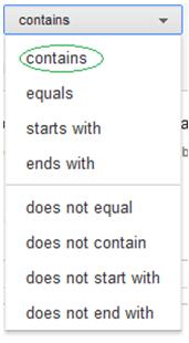 לדוגמא, אם אנחנו רוצים לרדוף אחרי גולשים שהגיעו לעמוד ה-T-Shirt באתר. נגדיר את ה-URL שיכלול דף זה: www.exmple.com/T-Shirt או www.exmple.com/clothing/T-Shirt – כלומר כתובת אתר שמכילה T-Shirt (נשתמש בתפריט הנפתח באפשרות –contains):