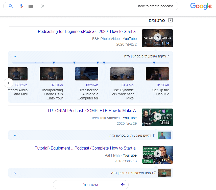- קבצי וידאו נגישים לגוגל – קבצי הוידאו של האתר צריכים להיות נגישים לבוט של גוגל על מנת שיוכל להיכנס אליהם ולסרוק אותם. הנגשת הקבצים יכולה להיות יעילה להצגת תצוגה מקדימה של וידאו והצגת רגע מפתח מתוך הסרטון.