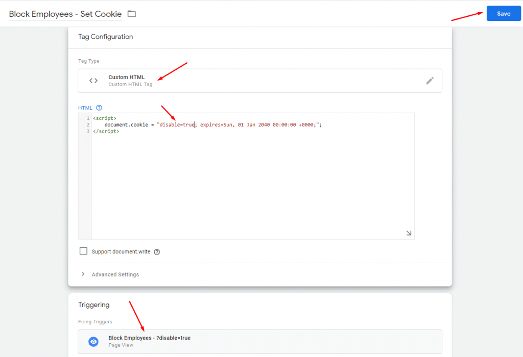 אחרי ששלושת חוקי ההיתכנות מתקיימים, ניתן לבצע את ההחרגה בתוך חשבון Google Tag Manager
