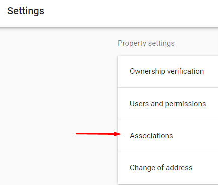 את החיבור לנכסים ניתן לעשות בחשבון ה-Search Console באזור Settings > Associations