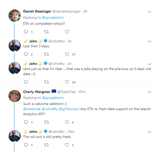 במידה ועוד לא ראיתם את האפשרות ב Search Console שלכם – קחו אוויר ותמתינו בסבלנות – לדברי ג'ון מולר העדכון מתגלגל בדקות אלו לכל החשבונות וסביר להניח שתראו את הנתונים הטריים בקרוב.