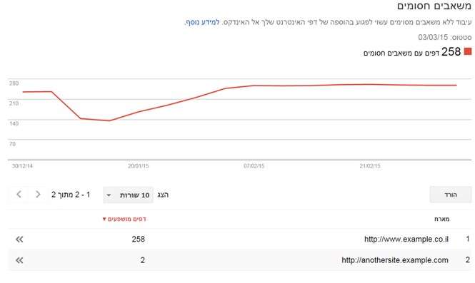 בתמונה המוצגת אנו רואים למעשה 2 מארחים אשר חוסמים משאבים כלשהם לסריקה. הראשון מבינם הוא למעשה האתר המוגדר בכלי למנהלי האתרים שאותו אנו בוחנים.