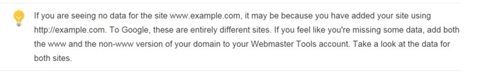 הכוונה ב-"הקפד לבדוק את כל גרסאות האתר" (שמקשר לקריאה נוספת), היא לכך שלפעמים מסתכלים על הכתובת www.example.com אבל למעשה האתר שלנו יושב על הכתובת example.com (ללא www) – וההבדל הוא למעשה שמיים וארץ מכיוון ששתי הכתובות הללו נחשבות לאתרים שונים.