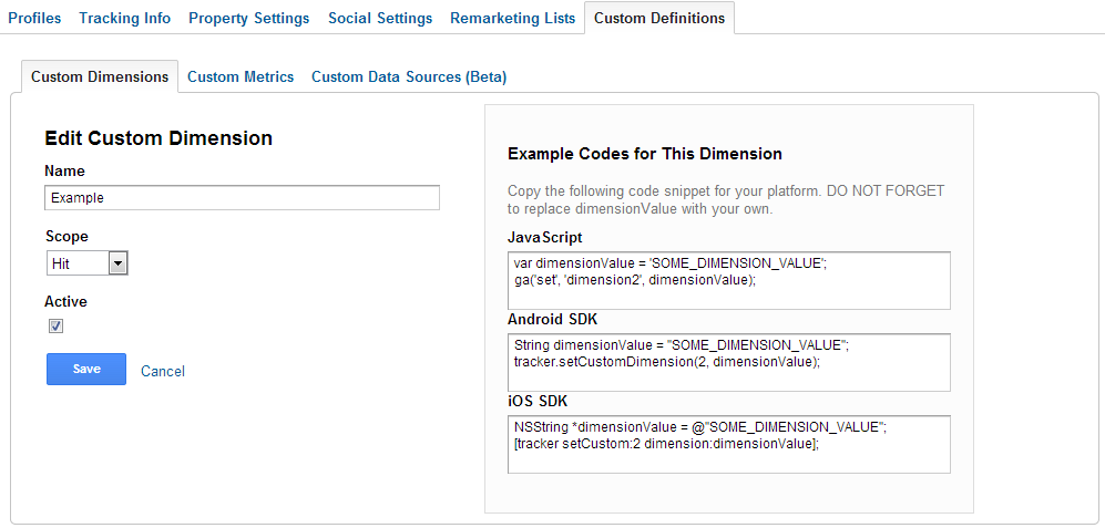 גרסת ה-UA דורשת הגדרה של נכס (Property) חדש, אם כי ניתן להגדיר מעקב מקביל אחר הגרסה הקלאסית (ga.js) והאוניברסאלית (analytics.js), באמצעות הטמעת שני הסקריפטים בו בזמנית. חשוב להבהיר שנכון להיום, אין אפשרות להמיר נכסי אנליטיקס קיימים לגרסת ה-UA. המעקב באמצעות UA חייב להתבצע באמצעות נכס חדש ייעודי לכך.