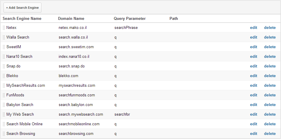 הגדרת מקורות חיפוש אורגניים נוספים – הגדרת מנועי חיפוש חדשים שאינם כלולים כברירת מחדל ברשימת מנועי החיפוש המוכרים של גוגל אנליטיקס. הרשימה הבסיסית די מצומצמת, ובאופן טבעי אולי, אינה מכילה את כל מנועי החיפוש האורגניים. בוואלה! לדוגמא, משתמשים במנוע החיפוש של גוגל, אך הסאב-דומיין search.walla.co.il מוגדר כאתר מפנה, מאחר ואינו מוכר לגוגל אנליטיקס כמנוע חיפוש אורגני. בגרסת ה-UA, ניתן לבצע הגדרה פשוטה בממשק על מנת לאפיין את search.walla.co.il כמנוע חיפוש אורגני (מה שבעבר דרש גישה לסקריפט המעקב של האנליטיקס).